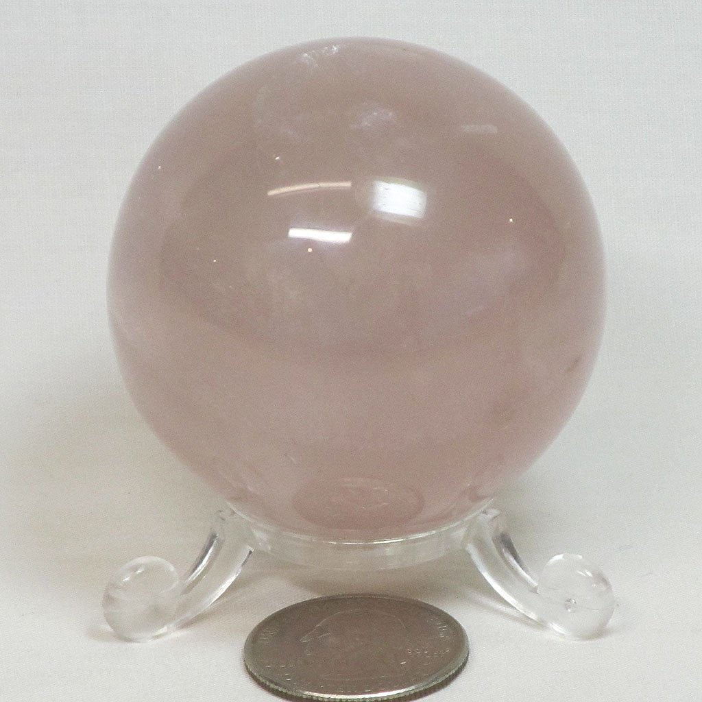 A marvelous polished rose quartz crystal sphere from Brazil. Comes with a display stand. Size: 54mm (2 1/8") across. Read more