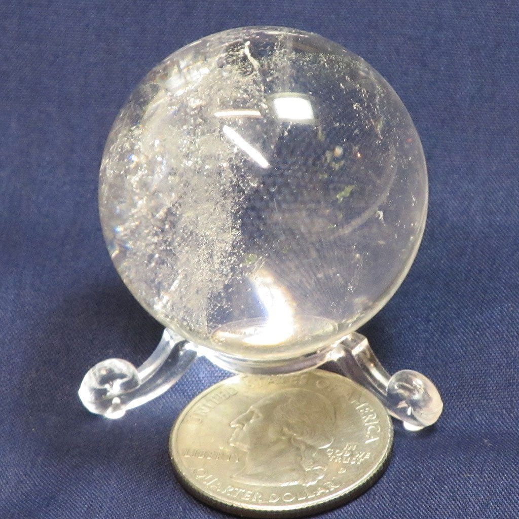 A very beautiful polished clear quartz crystal sphere from Brazil. Comes with a display stand. Size: 36mm (1 3/8") across. Read more