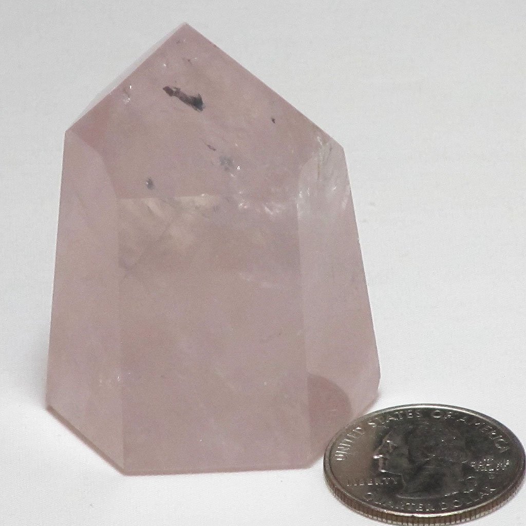 A fantastic polished rose quartz crystal point from Brazil that has small silver veils in the tip. Size: 1 1/2"... Read more