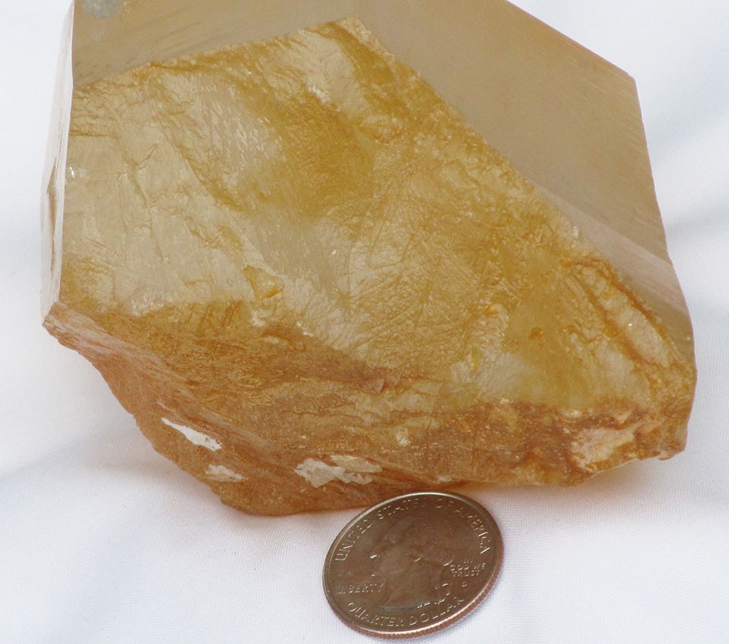 A fantastic tangerine quartz crystal point from Brazil that has a completely self-healed base and stands up on it's own... Read more
